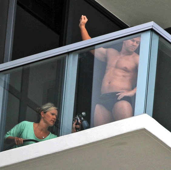 Mark Wahlberg getting a spray tan.